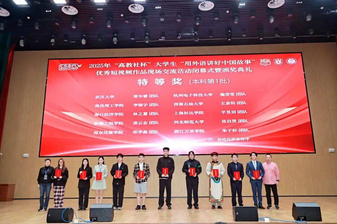 9月19日-21日,由中国英汉语比较研究会指导, 南京大学、江汉大学联合高等教育出版社共同主办的2025年“高教社杯”大学生“用外语讲好中国故事”优秀短视频作品现场交流活动在江汉大学举行。我校外语学院选送的短视频作品《蓝夹缬·寻梦非遗里的温州》(团队成员:缪亦婷、朱于轩、林航正、陈泓宇)获得全国特等奖,郑卓获优秀指导教师。