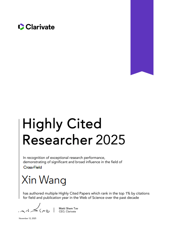 11月12日,科睿唯安(Clarivate)正式发布2025年度“全球高被引科学家”(Highly Cited Researchers 2025)名单,我校碳中和研究院王新研究员凭借在电极材料及催化材料领域的学术贡献与国际影响力,成功入选该权威榜单,彰显了我校在相关研究领域的科研实力。