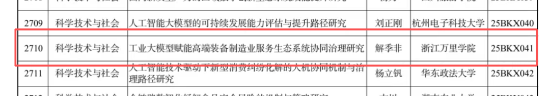 9月29日,全国哲学社会科学工作办公室正式公布了2025年国家社会科学基金年度项目立项名单。我校物流与电子商务学院解季非副教授主持申报的一般项目《工业大模型赋能高端装备制造业服务生态系统协同治理研究》(批准号:25BKX041)成功获批。这是我校持续推动科研创新、加强高层次人才队伍建设取得的又一重要成果。