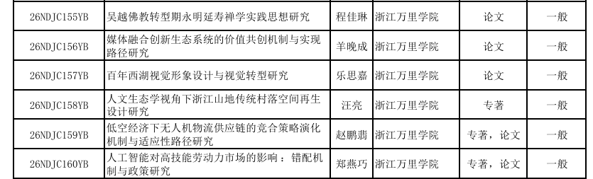 10月28日,浙江省哲学社会科学工作办公室正式发布《关于公布2026年浙江省哲学社会科学规划年度课题立项名单的通知》。我校马克思主义学院程佳琳老师、设计艺术与建筑学院乐思嘉老师和汪亮老师、物流与电子商务学院羊晚成副教授和赵鹏翡博士、商学院郑燕巧副教授申报的课题成功获批2026年浙江省哲学社会科学规划年度课题一般项目立项,展现了我校教师在哲学社会科学研究领域的扎实积累与持续创新活力。
