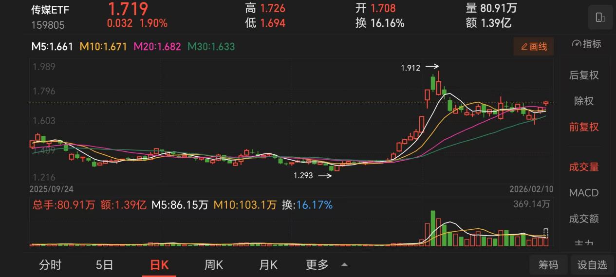 在A股市场,技术验证向规模化交付的转折点已至。AI应用从实验室走向生产线的过程,将推动传媒、AI、工业等板块的估值重构。传媒ETF(159805)聚焦内容生产、传播、消费全链条的技术革新,其持仓标的直接受益于AI视频生成对内容生产效率的提升、对内容创作门槛的降低,以及对内容消费体验的升级。从影视制作到广告营销,从在线教育到数字娱乐,AI视频生成技术正在重塑传媒行业的价值分配逻辑。