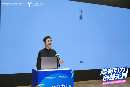 发布仪式后,广州美术学院教授曹雪教授做了关于“设计眼”的主题分享。作为资深设计大咖,曹雪以“如何用“设计眼”发现创意闪光点”为核心,结合自身参与城市形象设计、品牌视觉打造的丰富经验,从多维度为在场学生拆解创意设计的关键逻辑。在“观察维度”,他认为“设计眼的核心是‘看见不同’”,以深圳后海logo设计为例,讲述如何从“双H”中提炼出兼具现代感与地域辨识度的视觉符号。在“融合维度”上,他着重强调中华优秀传统文化与湾区地域特色的创意转化,鼓励学生打造有温度、有记忆点的作品。