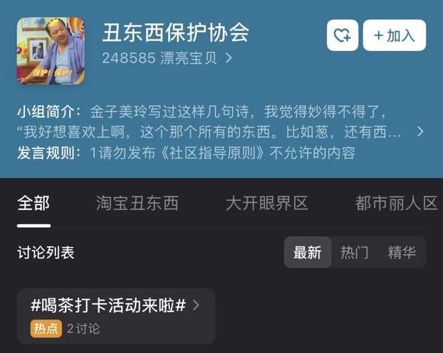 再如豆瓣「丑东西保护协会」小组,近25万自称“漂亮宝贝”的成员聚集于此,分享探讨丑衣服、丑水杯、丑玩具、丑宠物等生活里各类称得上“丑”的事物。人们就这样一次一次地在“不完美”中找到归属感,再用抽象化的审美表达对抗标准化的社会期待。