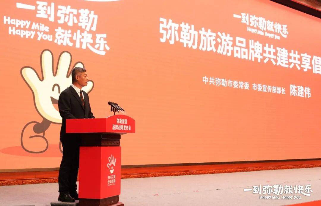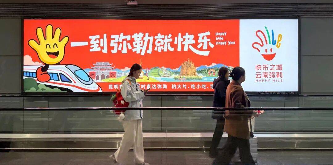 2025年9月25日,弥勒召开旅游品牌建设工作动员大会,向全市领导干部和涉旅主体宣讲弥勒旅游品牌战略,对品牌建设工作进行全民动员和全面部署。会上,李健书记强调:要站位全局、系统推进,要让“一到弥勒就快乐”成为弥勒现代化建设的生动实践和广大游客的线日,弥勒以全新品牌形象亮相中国国际旅游交易会,首次向行业推介“快乐之城 云南弥勒”;12月底,弥勒旅游广告在昆明长水机场上线,凭借醒目、大气、极具辨识度的设计,成为一道亮眼的风景线。